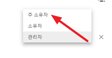 관리자 옆 화살표를 눌러보면 "주 소유자"로 바꿀 수 있음을 알 수 있는데요. 한번 눌러보겠습니다.