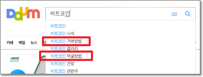 1위 비트코인으로 다음검색을 해본 후 자동완성 중에서 "비트코인 거래방법"과 "비트코인 채굴방법"을 이용해서 글을 써보겠습니다. 글은 300자 내외로 쓰고 이미 있는 다른사람들 블로그로 링크를 걸어보도록 하겠습니다.