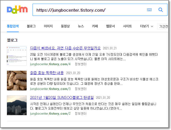 12일이 지났습니다. 첫글이후 지나간날은 12일입니다. 물론 만들자 마자 며칠 안되서 블로그는 다음에서 노출이 되기 시작하였습니다.